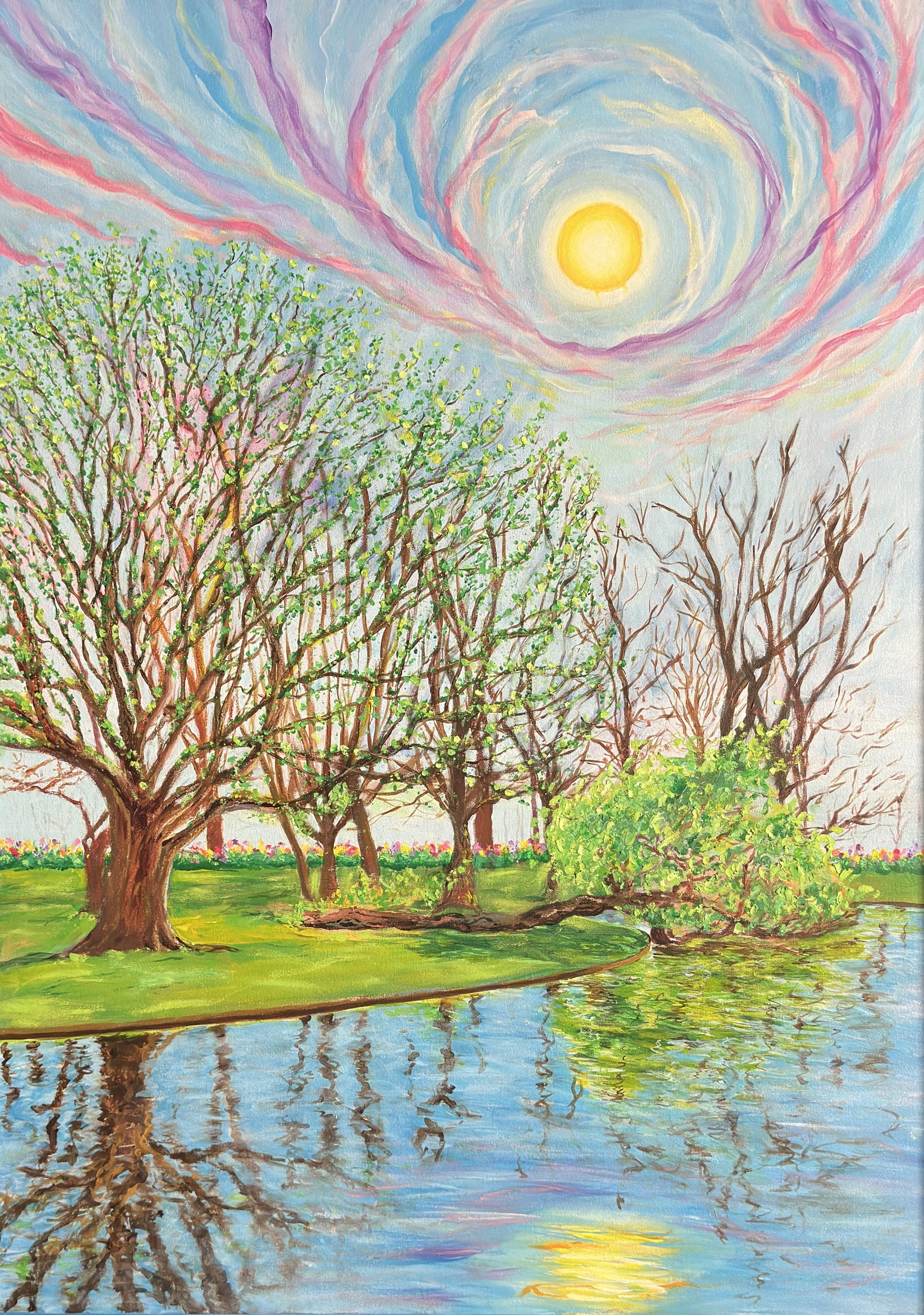 24” by 34” acrylic painting of the fallen tree in Vondel park, Amsterdam.
